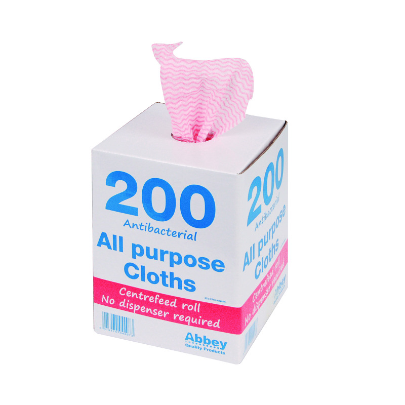 These general purpose, semi disposable cloths have an antibacterial coating for a hygienic clean over several uses. The roll of 200 cloths come in a handy dispenser box for hygienic storage and easy access. Each 40gsm cloth measures 220 x 370mm. Use as part of a colour coordinated cleaning system to avoid cross contamination. This pack contains 200 red cloths.