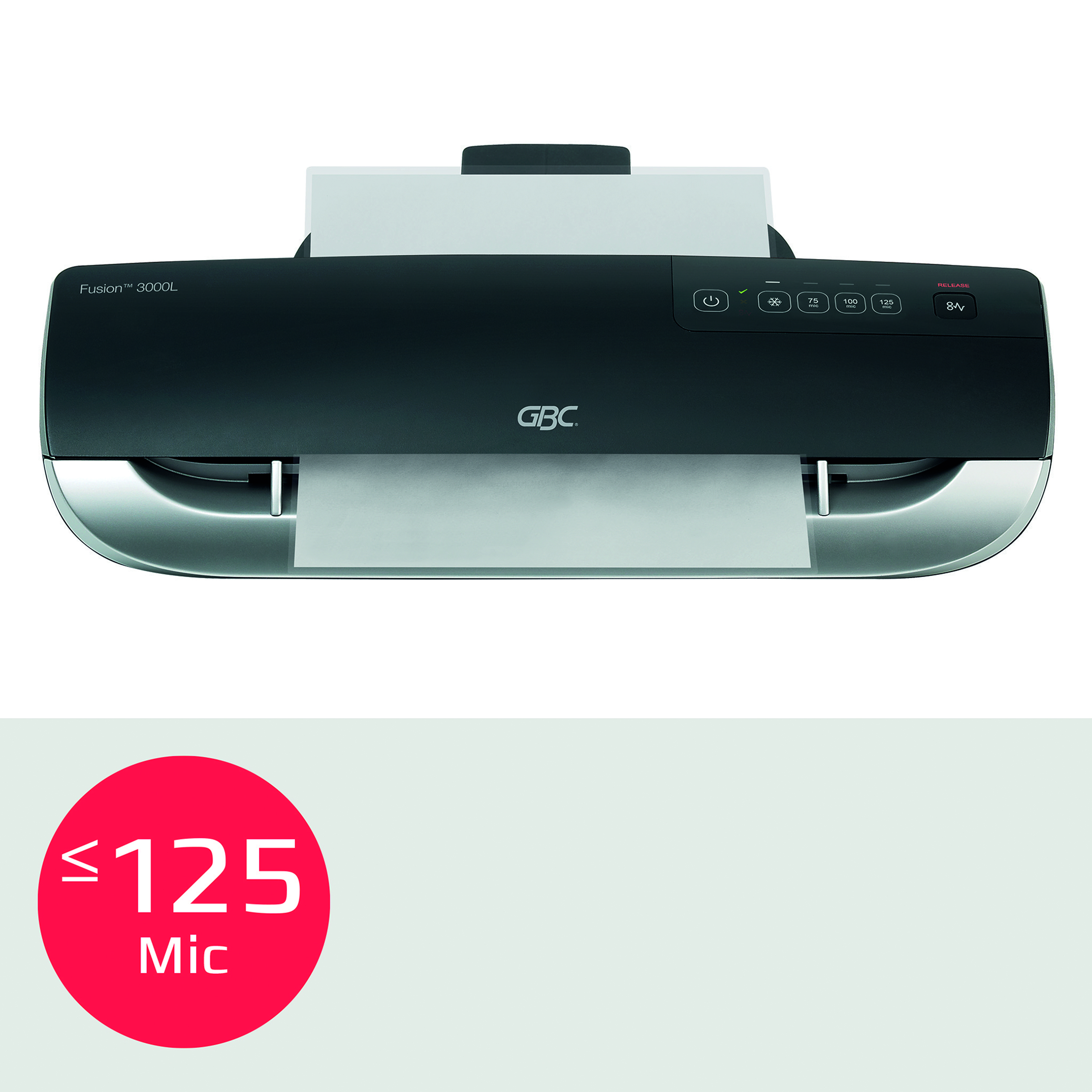 Right First Time, in Half the Time. Ideal for the frequent home or office user, the Fusion 3000L A4 Laminator guarantees great results fast. Stylish and compact, it is ready to use in 1 minute and laminates a single document from ID to A4 size in just 30 seconds using 2x75 micron pouches. Designed for use with 2x75 to 2x125 micron pouches. An adjustable pouch guide and an exit tray keep documents precisely aligned and perfectly flat.